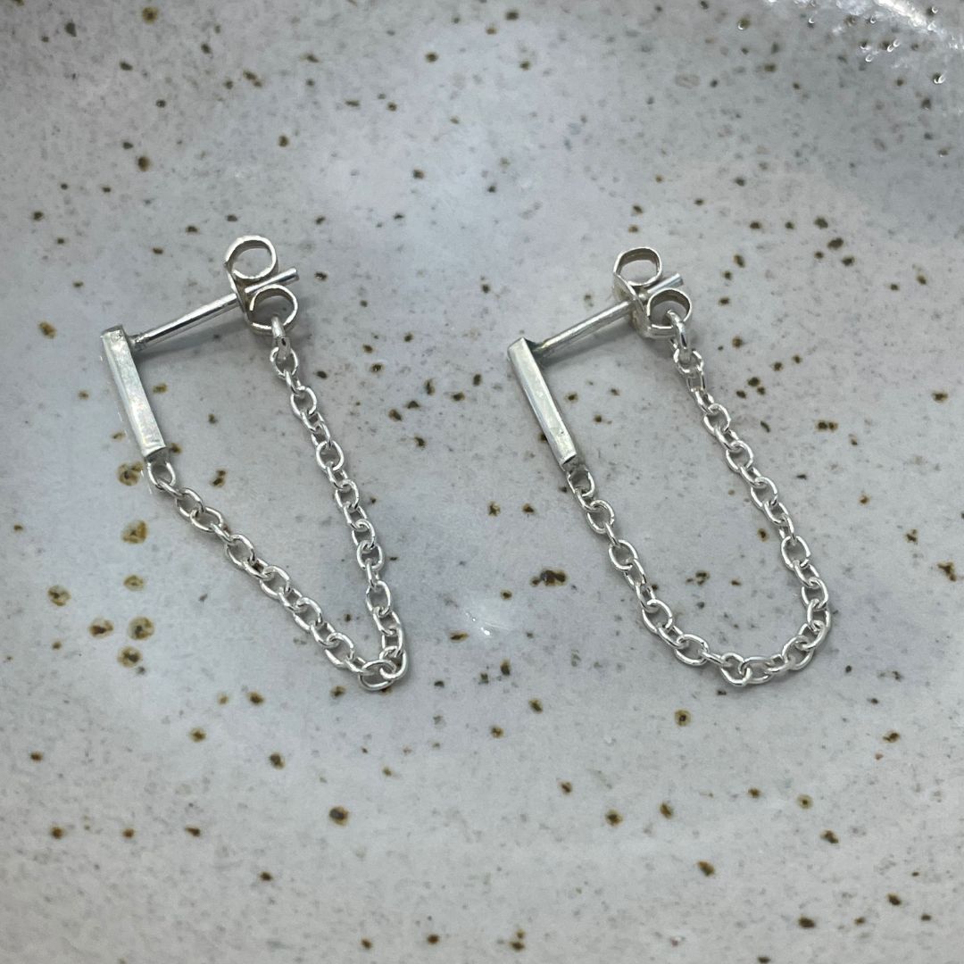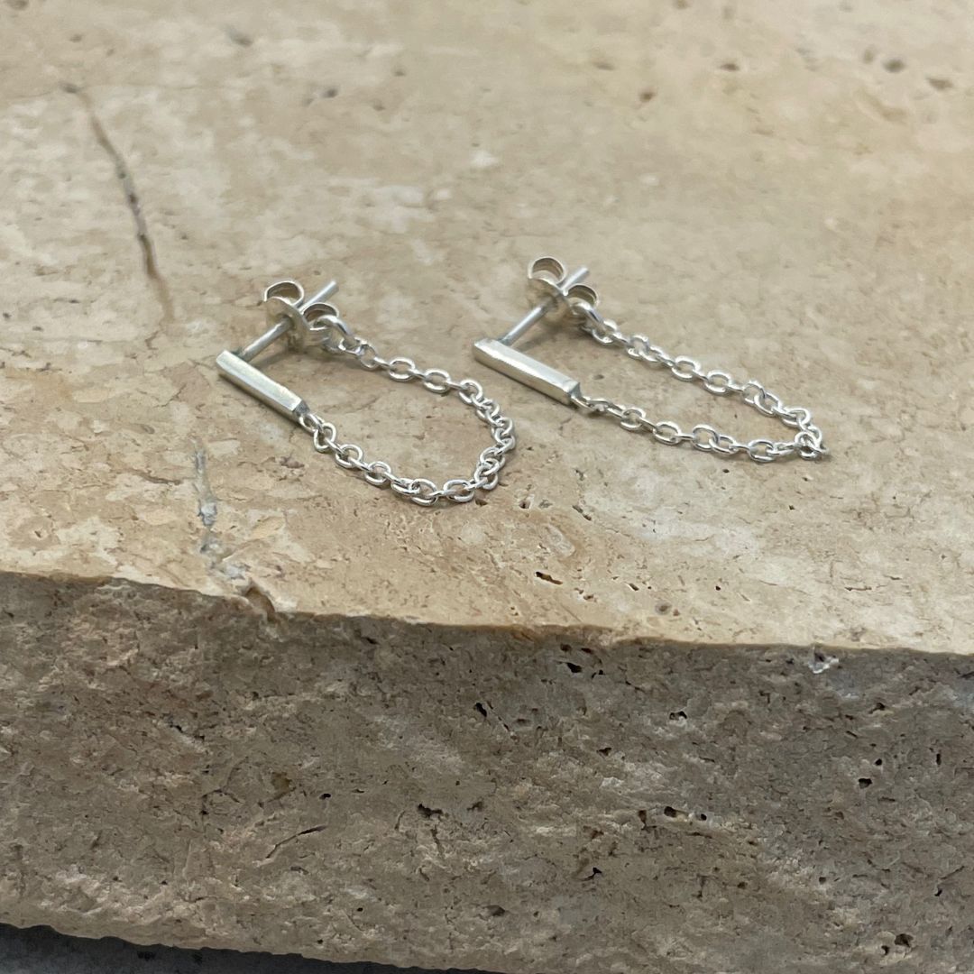 Treat yourself to the perfect combination of style and craftmanship with our bar chain stud earrings, and elevant your accessory game to new heights.