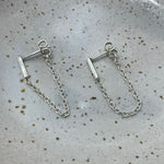Introducing our new twist on the classic chain stud earring: the bar chain stud earring. This fresh take combines the boldness of a chain with one of our most popular designs- the sleek bar stud- for a unique and edgy look. You'll want to wear these earrings every day, as they are a versatile addition to any outfit.