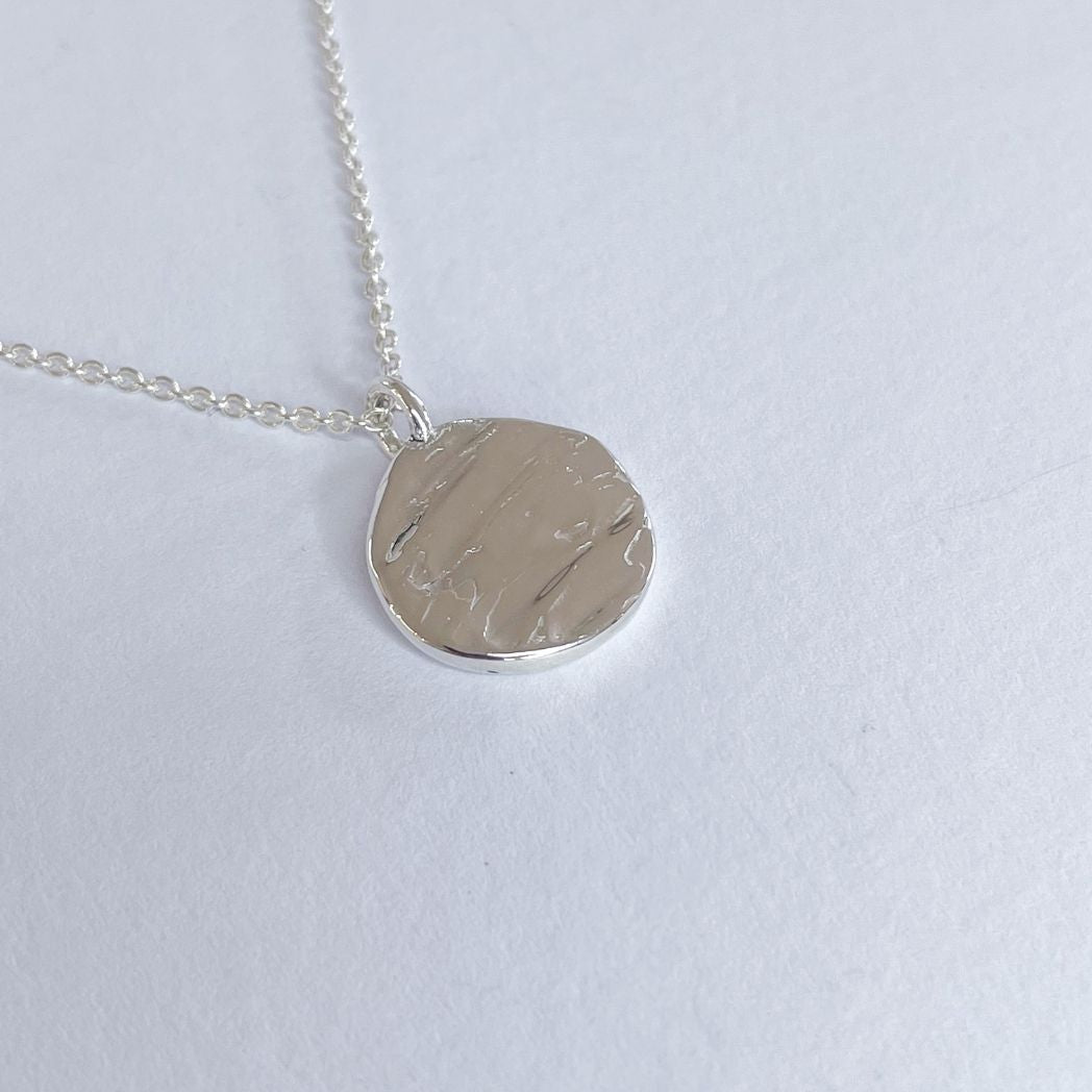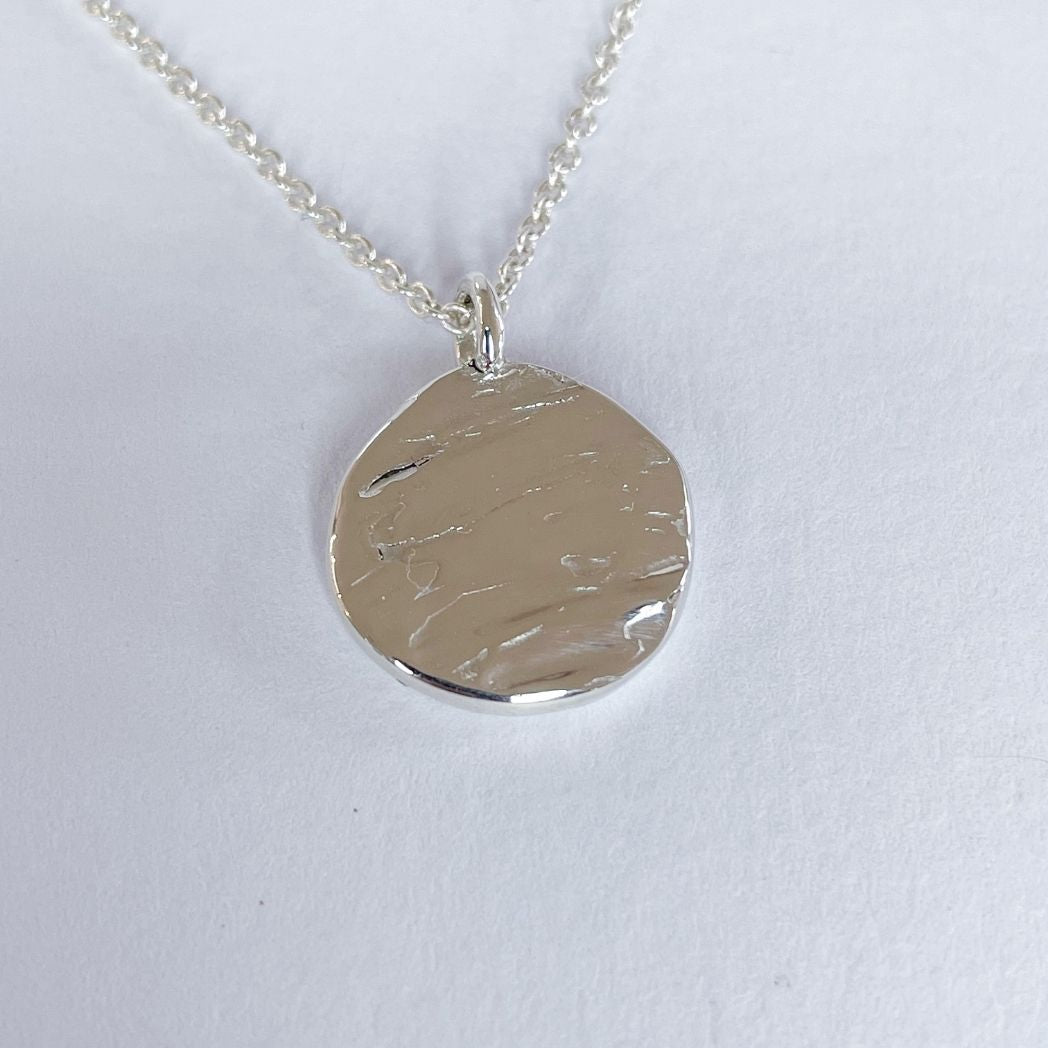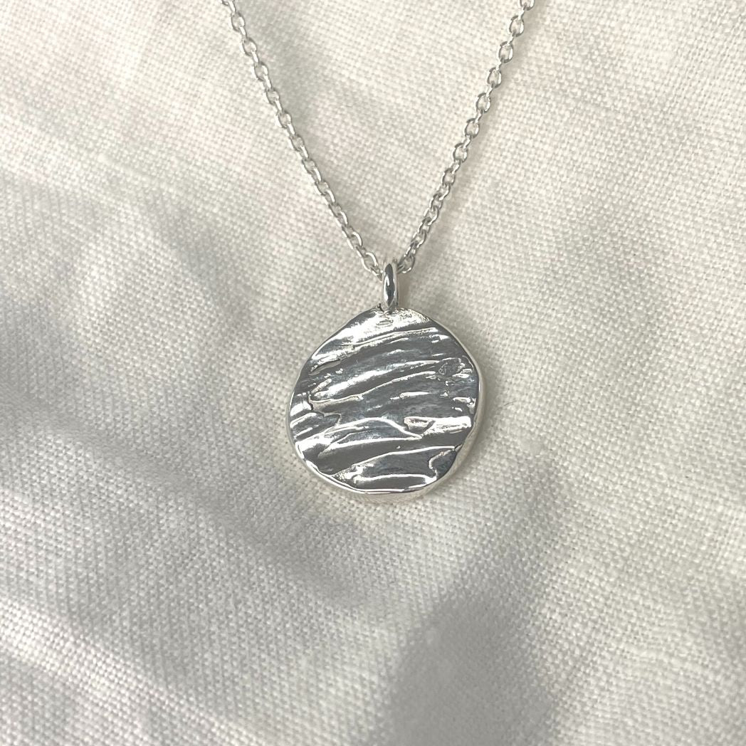 This pendant was originally made from a soft wax and therefore the details and unique markings can be seen on your pendant. It is the irregular shape of the circule, and the markings it carries that makes this organic piece beautiful, and imperfect like each and everyone of us.