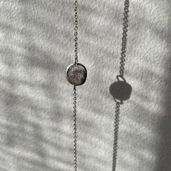Our dainty dot initial bracelets are made by hand especially for you. Each dainty dot is made from sterling silver before being stamped and then individually attached to the chain.