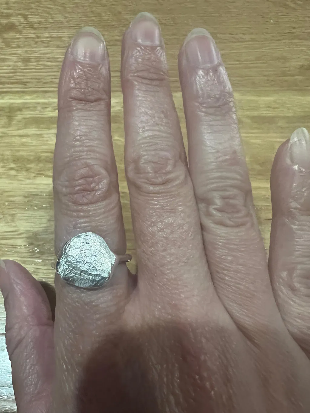 Ended up using a paw print because my dog's nose is unusually smooth and the ring (and pendent) we received back were amazing! The detail is amazing - turned out much better than expected. The ring is very comfortable - the sizing ring sent is genius. Thank you so much for this keepsake!