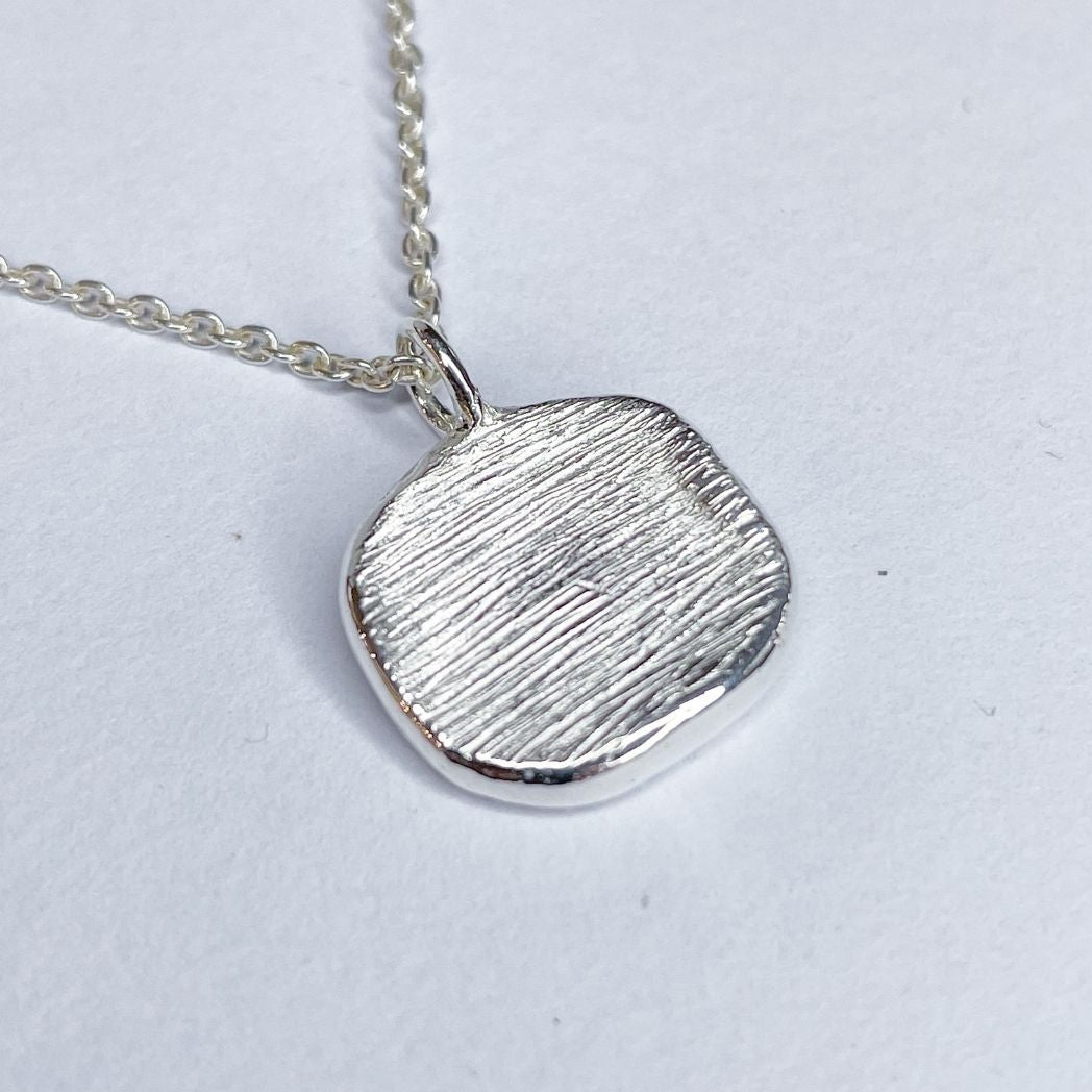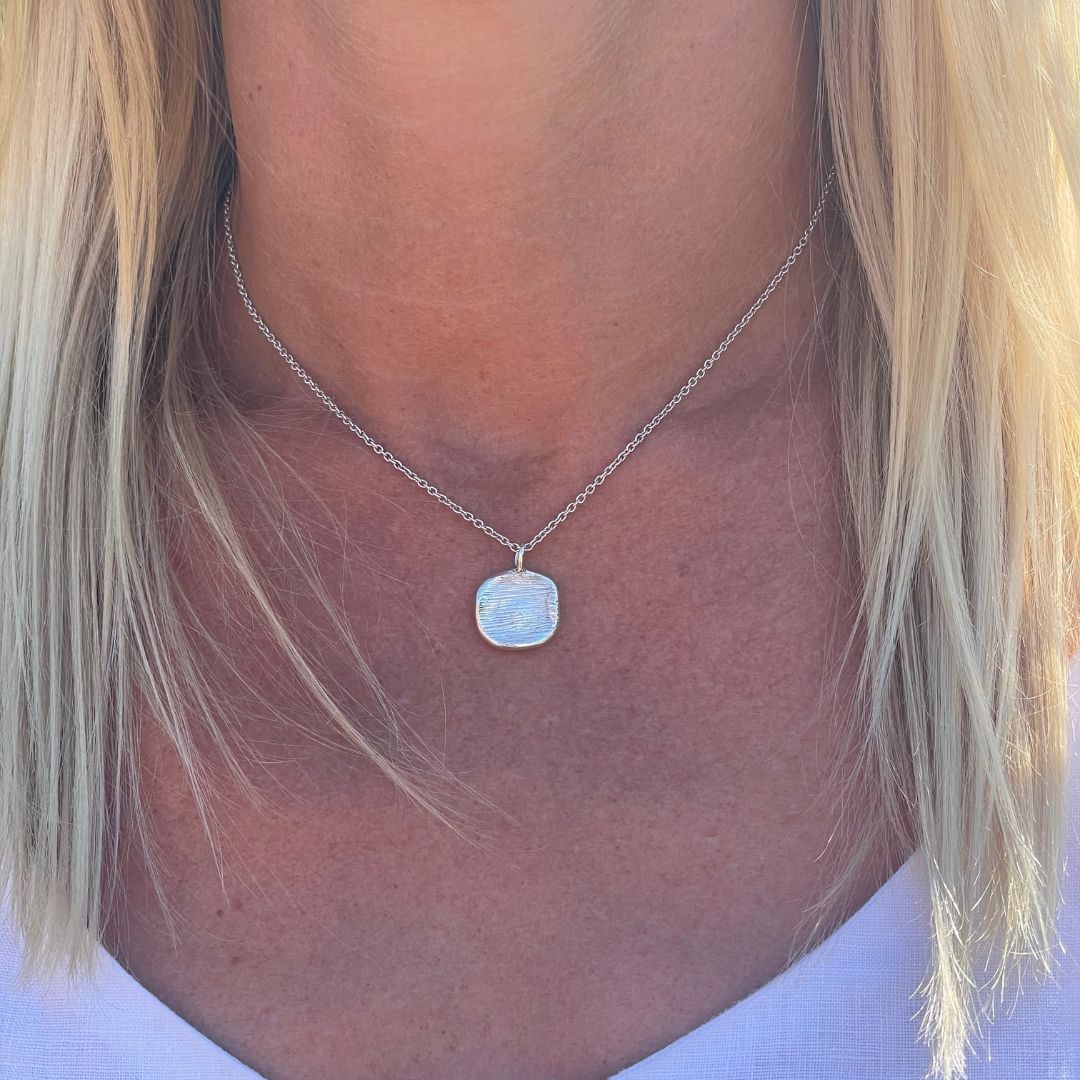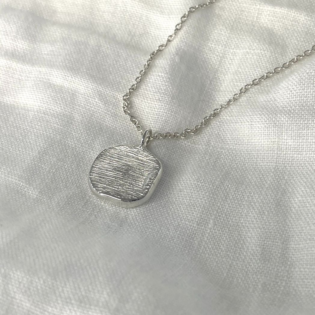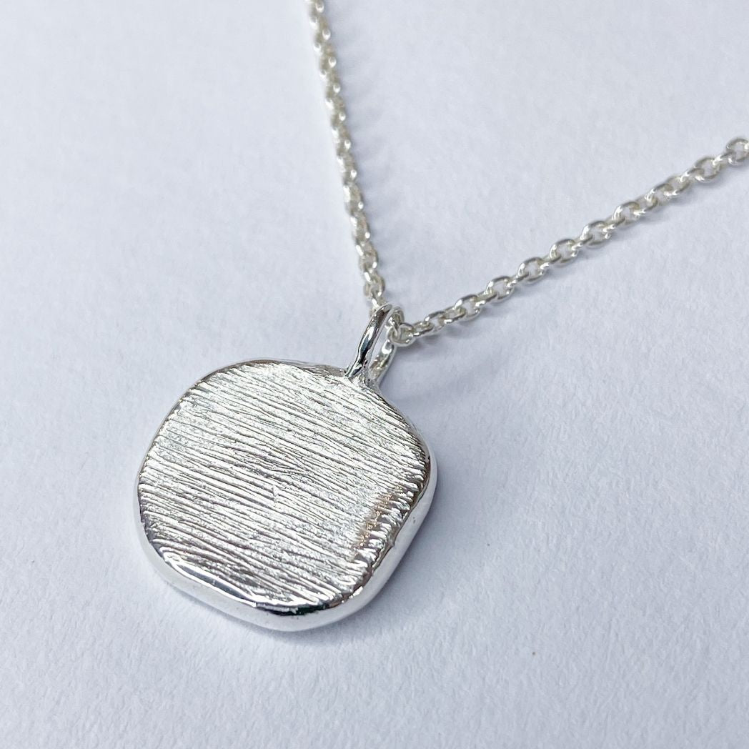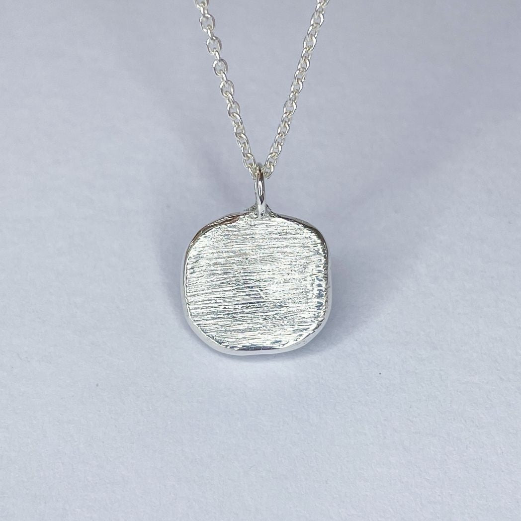 This pendant was originally made from a soft wax and therefore the details and unique markings can be seen on your pendant. It is the irregular shape of the square, and the markings it carries that makes this organic piece beautiful, and imperfect like each and everyone of us. Made to last, designed to be loved.